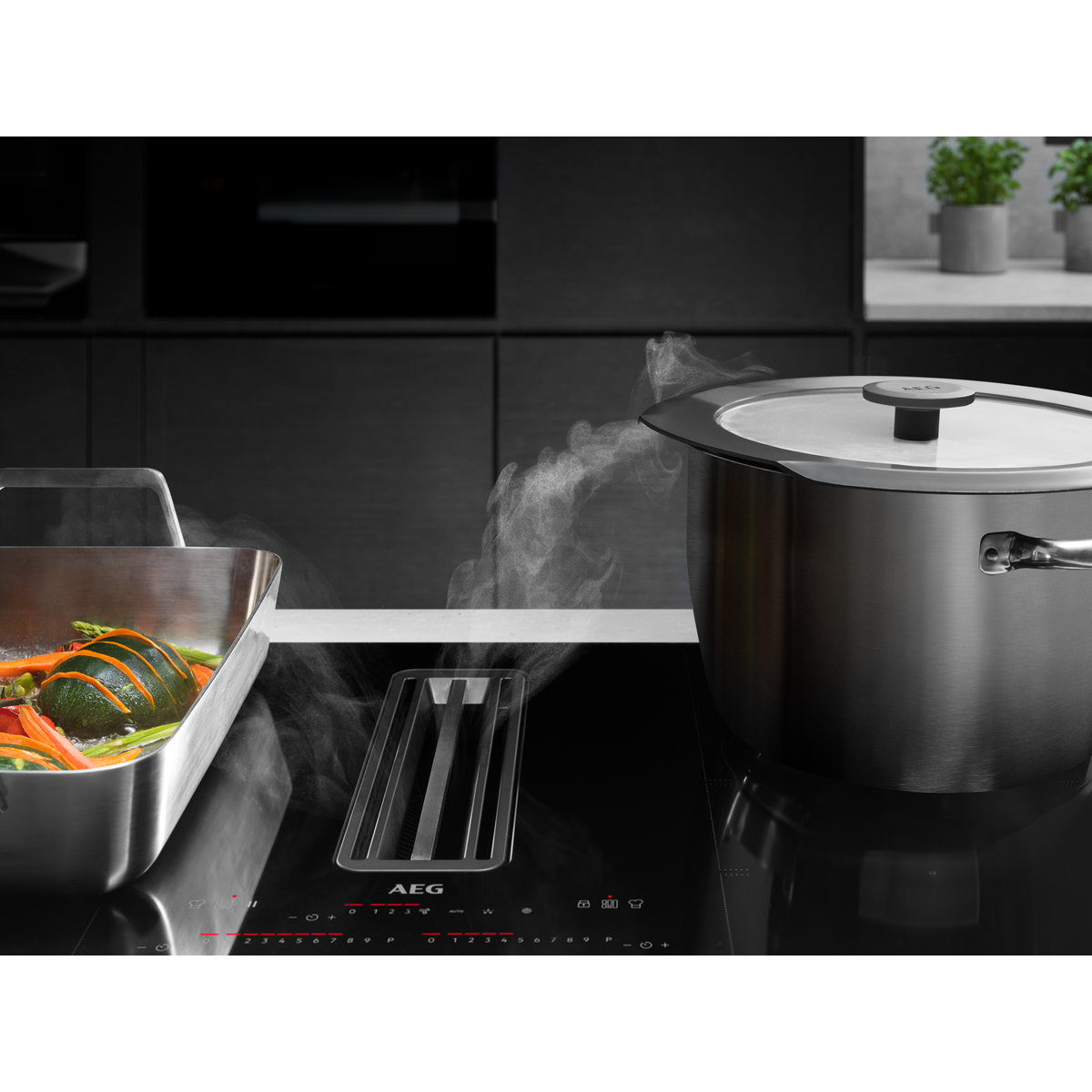 Det kan bli väldigt mycket os och ånga i köket när du lagar mat. Placera bara det ångventilerande locket på pannor med en diameter på 26, 28 eller 30 cm så kommer os och ånga omdirigeras effektivt in i fläkten.