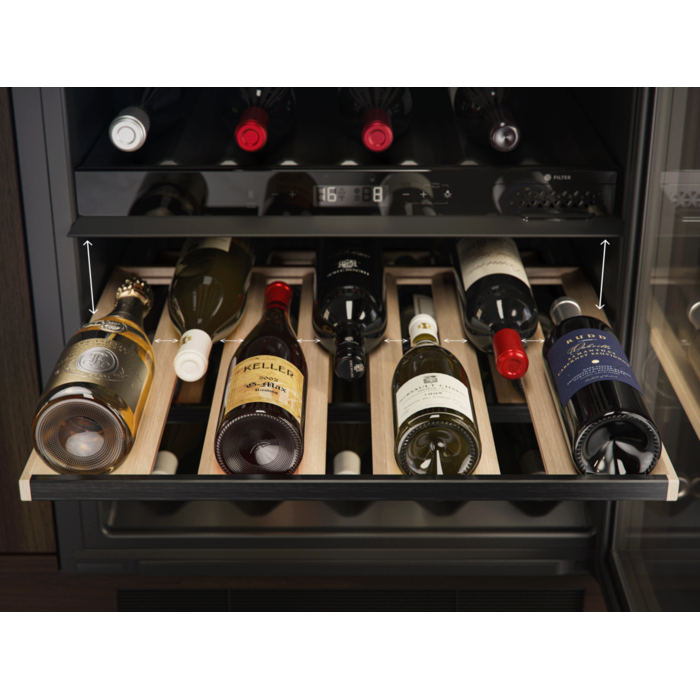 8000 Perfect Shelving visar upp din vinkollektion med hållbara trähyllor i premiumklassen. Utformad med ett perfekt mellanrum för att passa alla vanliga 750 ml flaskor, inklusive din favoritchampagne, utan att repa etiketterna.