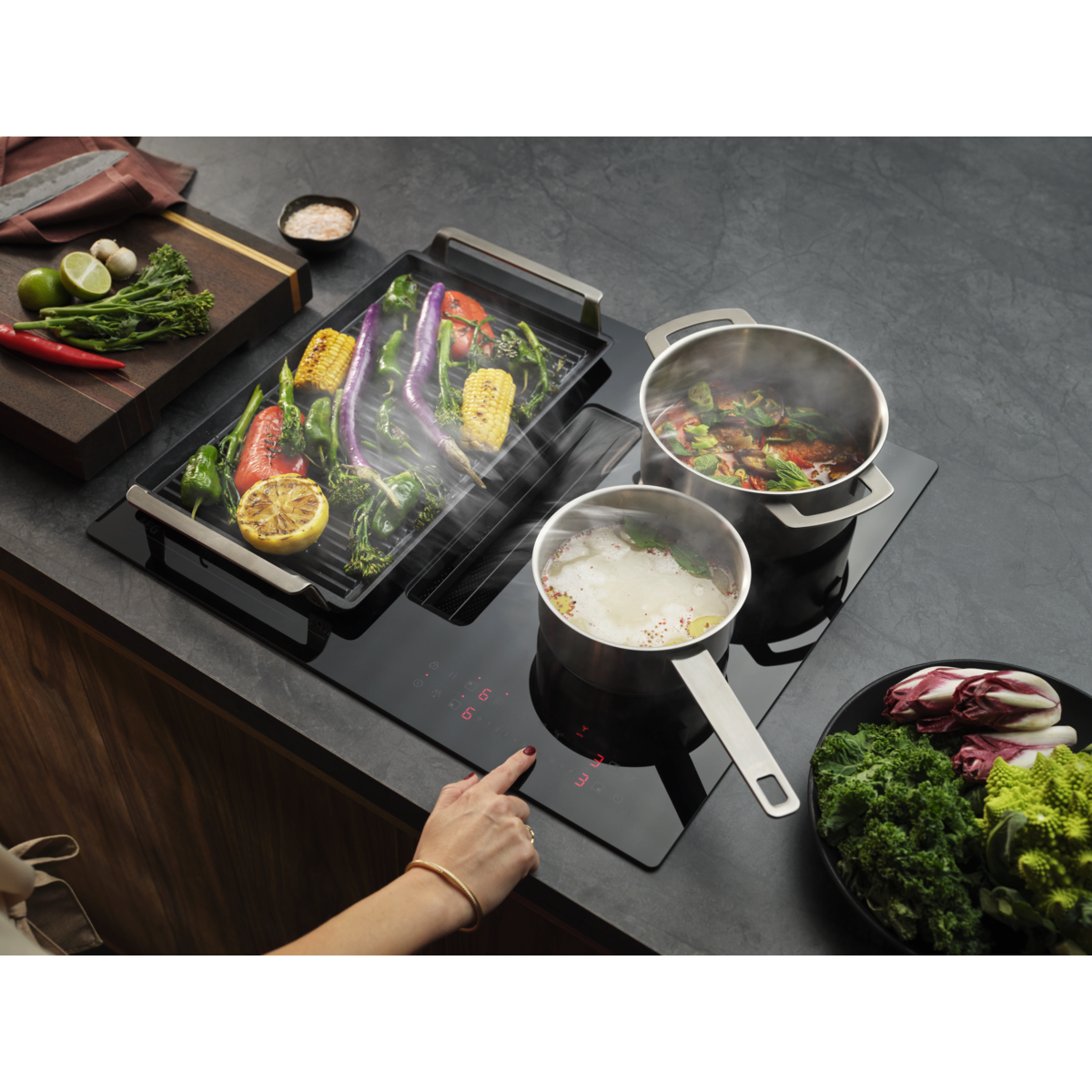 Med Bridge funktionen kan du koppla samman två separata tillagningszoner och skapa en stor, enhetlig tillagningsyta. Det innebär att du får jämn värmefördelning över hela ytan, perfekt för större kastruller eller en plancha-grill.