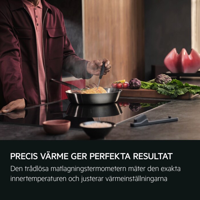 9000 SensePro induktionshäll har en trådlös termometer som mäter matens temperatur och justerar hällen automatiskt för en precis uppvärmning. Ta smaker och texturer till nästa nivå, oavsett vad du lagar.