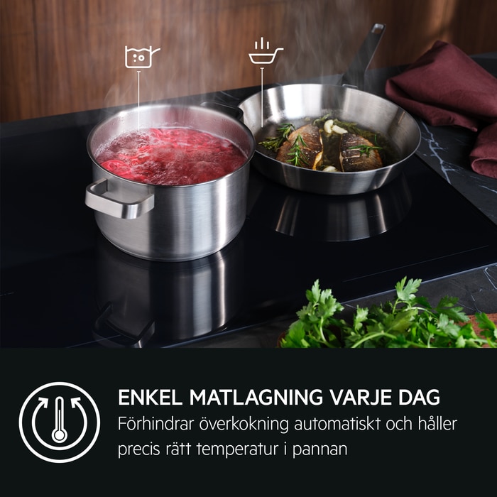 De smarta tillagningssensorerna SenseBoil & Fry justerar automatiskt värmen och hindrar att något kokar över samt ser till att du har precis rätt mängd värme när du lagar till måltiden. Enastående resultat och energibesparingar – vare sig du kokar pasta eller bryner en stek.