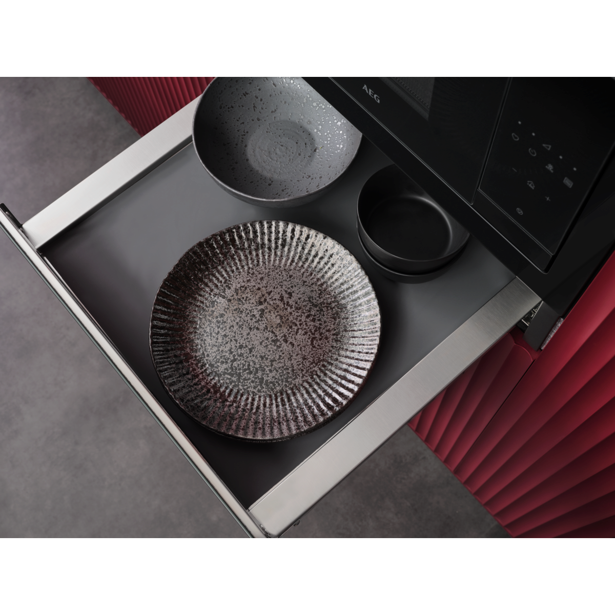 Förvaringslådan är den perfekta platsen för keramiktallrikar, glas, sous vide-påsar och ugnsplåtar. Fungerar med resten av de andra inbyggda köksprodukterna.