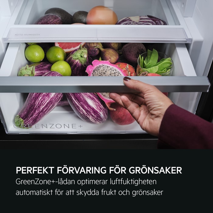 7000 GreenZone+ har en förseglad låda som skapar optimal luftfuktighet för att skydda frukt och grönsaker. Fuktmembranet förhindrar för mycket kondens.