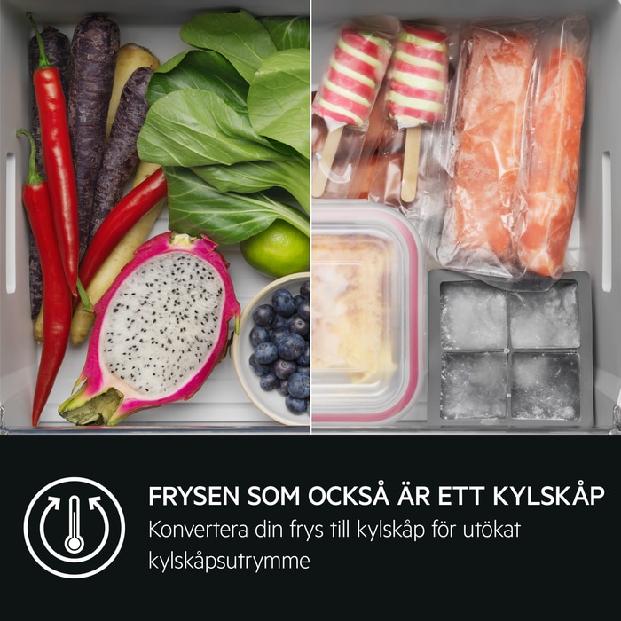 Frysutrymmet förvandlas till kyl. För mer flexibilitet