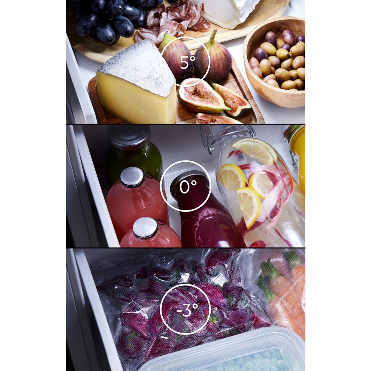 Med MultiChill 0°-lådan kan du ställa in optimal temperatur för dina ingredienser, från -3 °C till 5 °C. Bevara perfekt smak och konsistens på din mat.