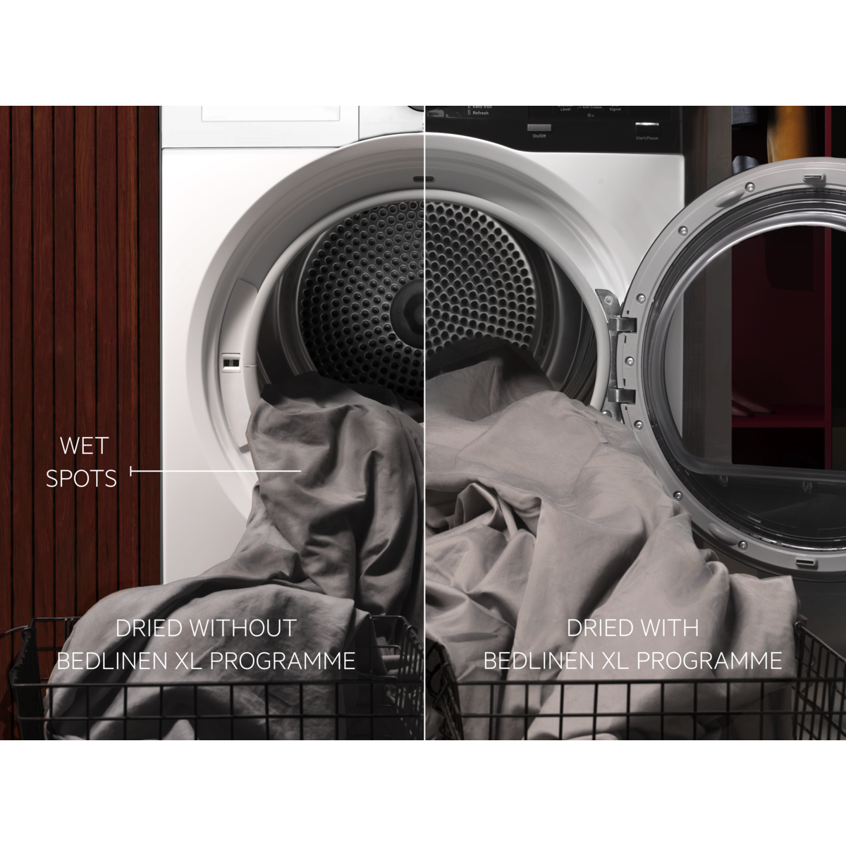 Torkar sängkläder och stora tvättar jämnt
