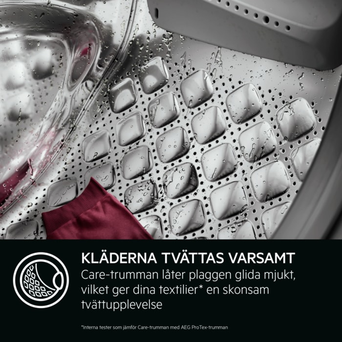 *Interna tester som jämför Care-trumman med AEG ProTex-trumman.