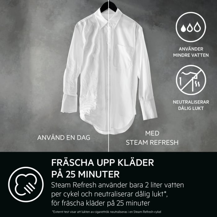 *Internt test med 1kg tvätt i ångprogrammet jämfört med fintvättsprogrammet.